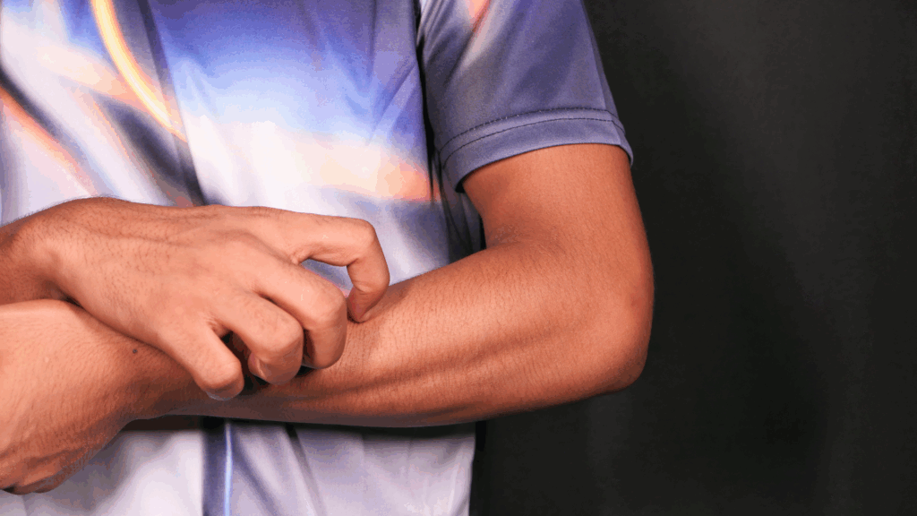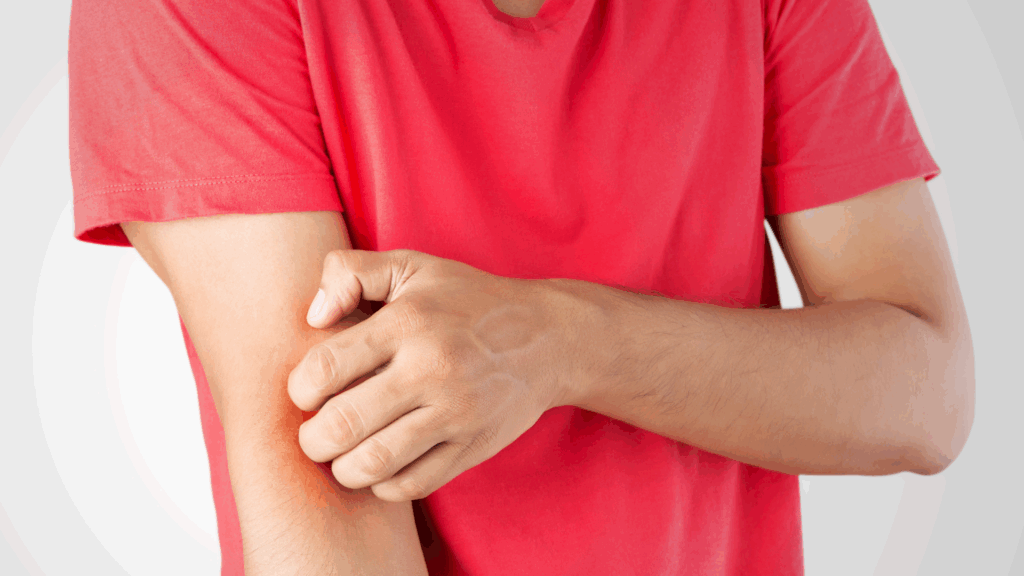 The first signs of shingles often include tingling, burning, or itching in one area of the body, usually on one side. Within a few days, a red rash appears and develops into clusters of fluid-filled blisters. These blisters eventually dry out and form scabs over several weeks. The rash often wraps around one side of the torso but can also appear on the face, neck, or other areas.