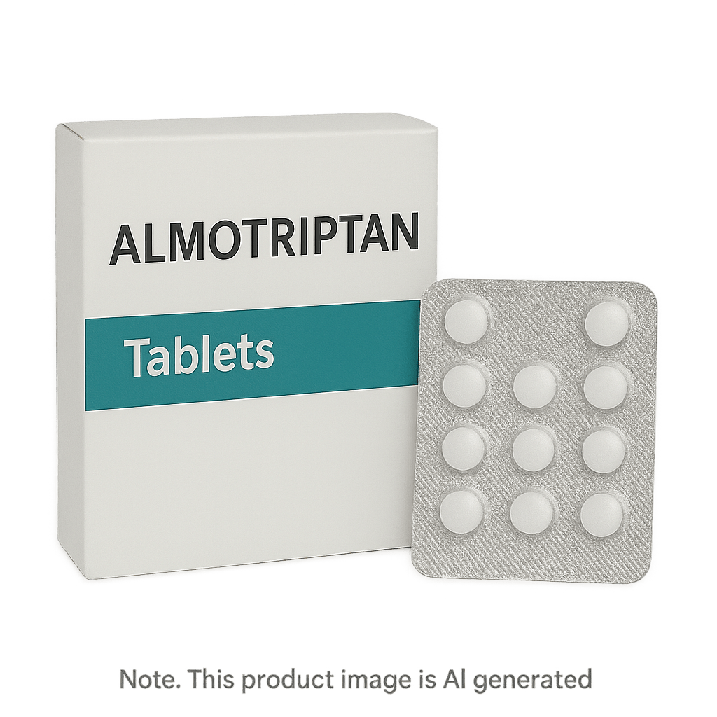 Almotriptan Tablets are a fast-acting prescription treatment used to alleviate acute migraine attacks in adults. They are suitable for individuals who experience migraines with or without aura. Almotriptan helps reduce the severity and duration of migraine symptoms, offering rapid relief when taken early in the migraine phase.
