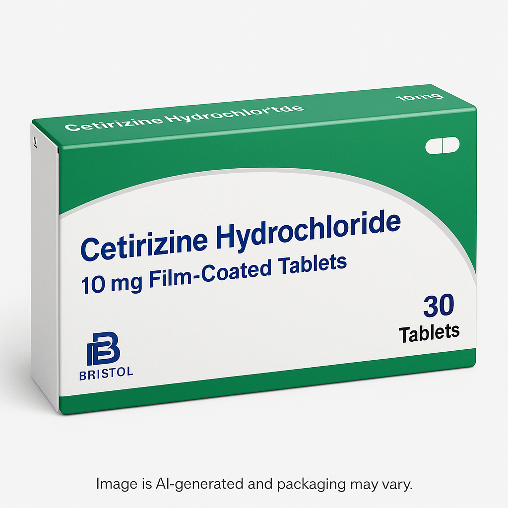 Cetirizine 10mg Tablets are non-drowsy antihistamines used to relieve allergy symptoms caused by hayfever (seasonal allergic rhinitis), dust mites, pet dander, insect bites, and skin reactions like hives or eczema. Each tablet contains 10mg of cetirizine dihydrochloride, a well-established second-generation antihistamine that provides 24-hour relief from sneezing, runny nose, itchy eyes, and skin rashes.