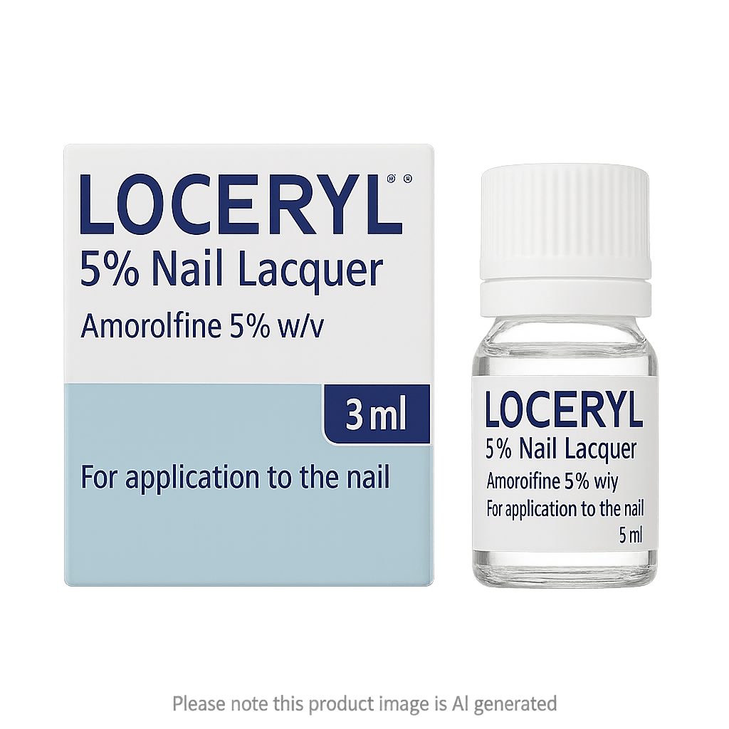 Loceryl 5% Nail Lacquer is a topical antifungal treatment used for the management of onychomycosis—fungal infections of the nails. It is prescribed to patients whose infections are mild to moderate and not involving the nail matrix. Its convenient lacquer formulation makes it ideal for long-term therapy without the systemic side effects associated with oral antifungals.