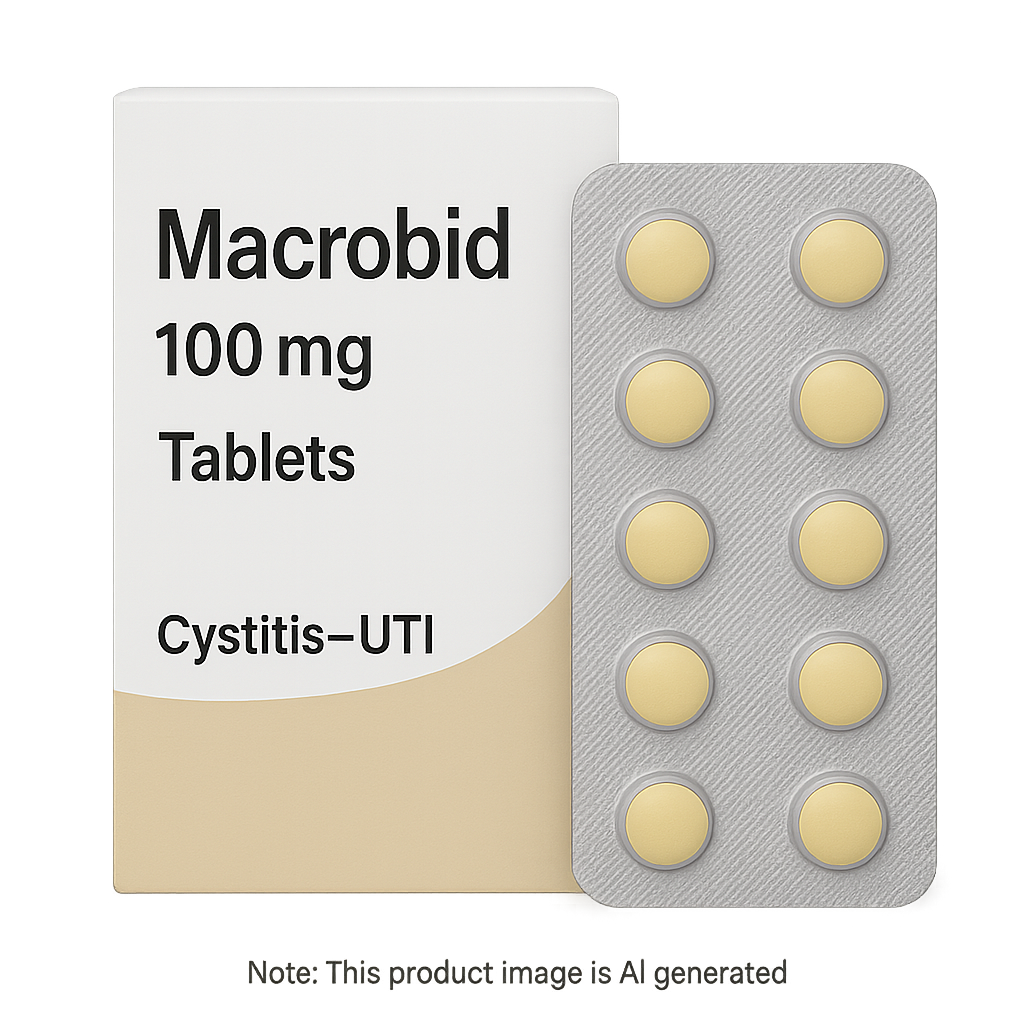 Macrobid 100mg Tablets are a prescription antibiotic used for the treatment and prevention of uncomplicated urinary tract infections (UTIs), particularly cystitis, in adult women. It is frequently prescribed for short-term use when symptoms such as painful urination, urgency, and frequent bladder emptying are present.