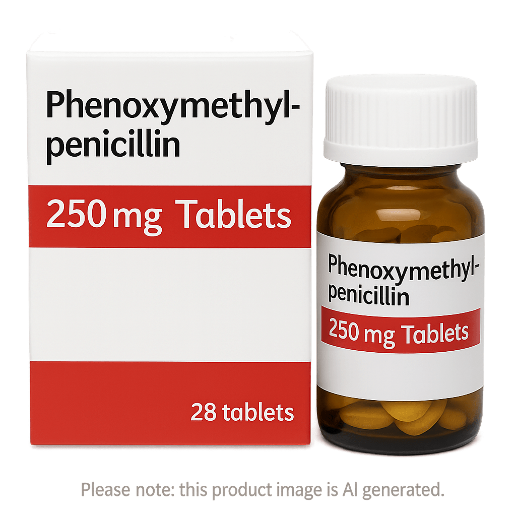 Phenoxymethylpenicillin Tablets are a type of penicillin antibiotic used to treat a variety of mild to moderate bacterial infections. Also known as Penicillin V, this medication is widely prescribed for infections of the throat, mouth, and upper respiratory tract, as well as dental infections and some skin conditions. It is also used long-term in specific cases to prevent rheumatic fever or recurrent infections in at-risk individuals.